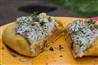 Danach die Fladen mit der Schmand Kräutermasse bestreichen.
